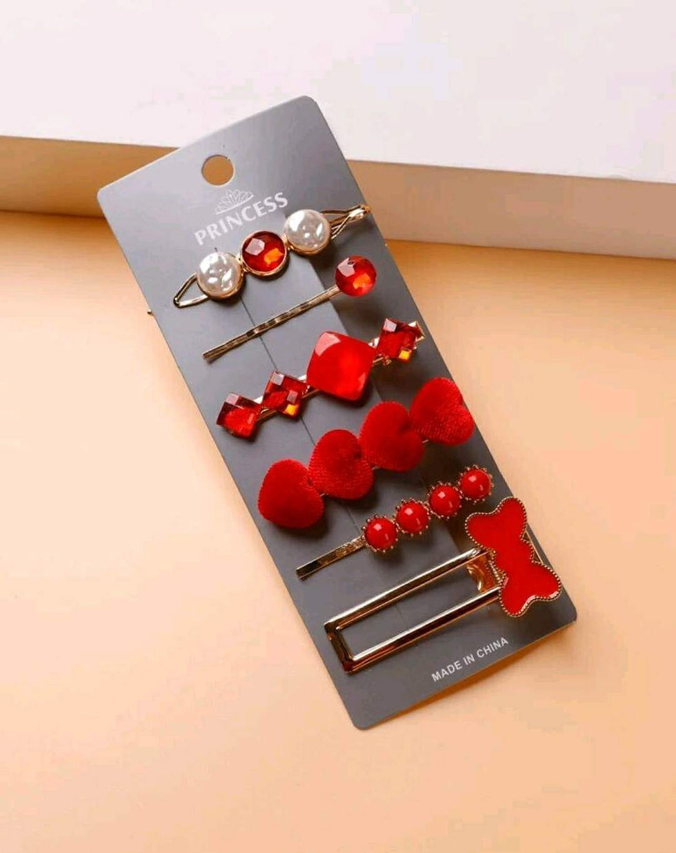 6pc Heart & Bow Decor Hair Clip Set